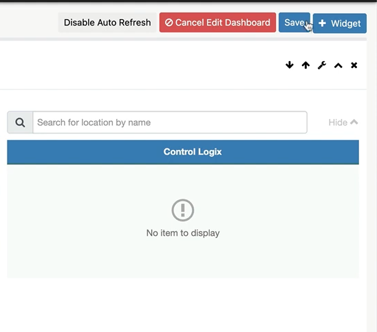 Navigate to the ‘Control Logix’ dashboard that was just created and select the company. In this example, Company ‘Demo’ is selected. Next, select the Site: ‘Demo Site 3’. Finally, select the Location: ‘Example for Video’.